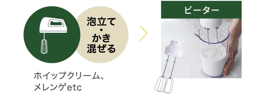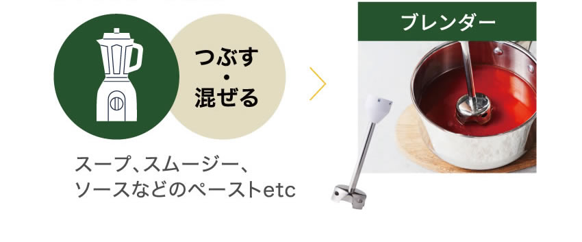 「つぶす」「混ぜる」「泡立てる」「かき混ぜる」