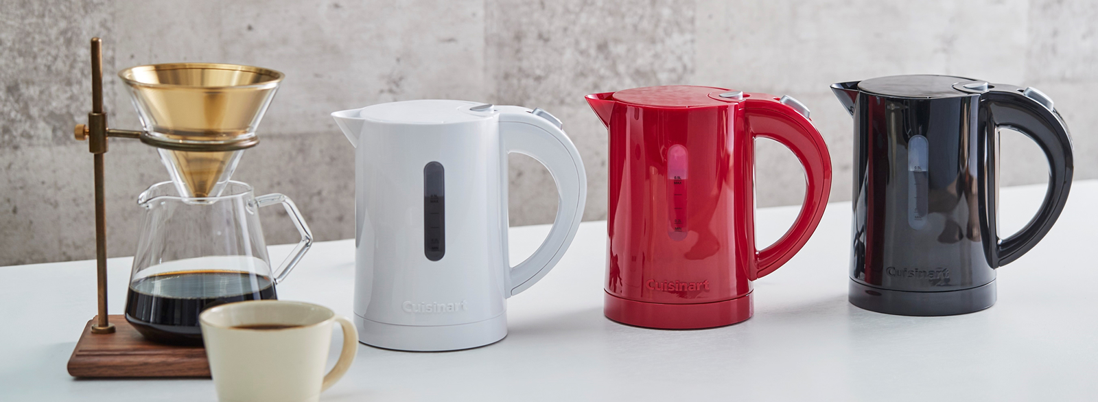 クイジナートブランド初の電気ケトルである《電気ケトルミニ》。0.5L という今までにないコンパクトなサイズは使いやすく、ちょっとお茶やコーヒーを飲みたいとき、スープや即席麺を食べたいときなど、さまざまなシーンで快適に使えます。