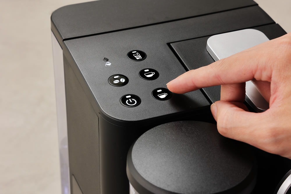ミルの下にフィルターカップをセットし豆を挽き、粉の入ったフィルターカップを抽出ヘッドにセット。お好みの抽出量をボタンで選んだ後、淹れたてのコーヒーが楽しめます。コーヒー豆を挽いている様子が目に見えて一杯ずつ自分でコーヒーを淹れるクラフト感が楽しめるコーヒーメーカーです。