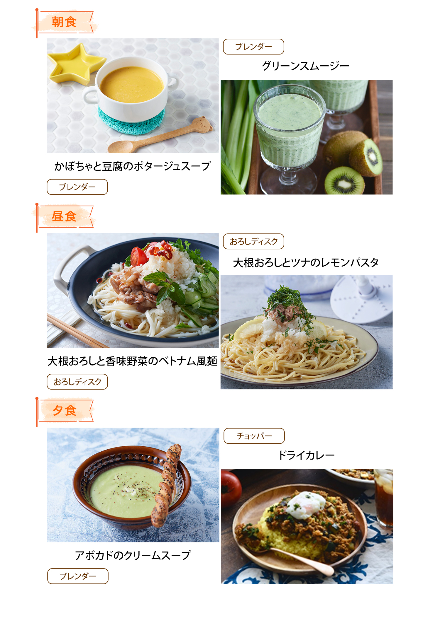 ●定格時間:ブレンダー1分、ビーター3分、チョッパー1分、おろしディスク2分