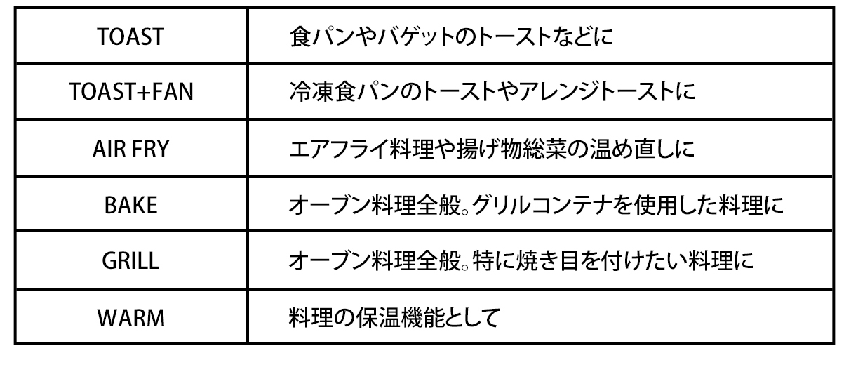 その他、厳選した調理モードと、ラックの設置場所を上段と下段に変えられるなど、より使い勝手がよくなりました。