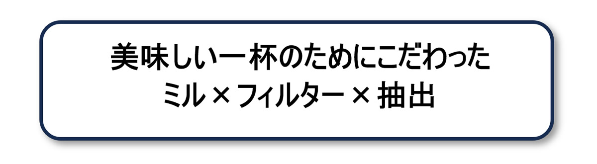 ドリップワンこだわりの「ミル」×「フィルター」×「抽出」により、