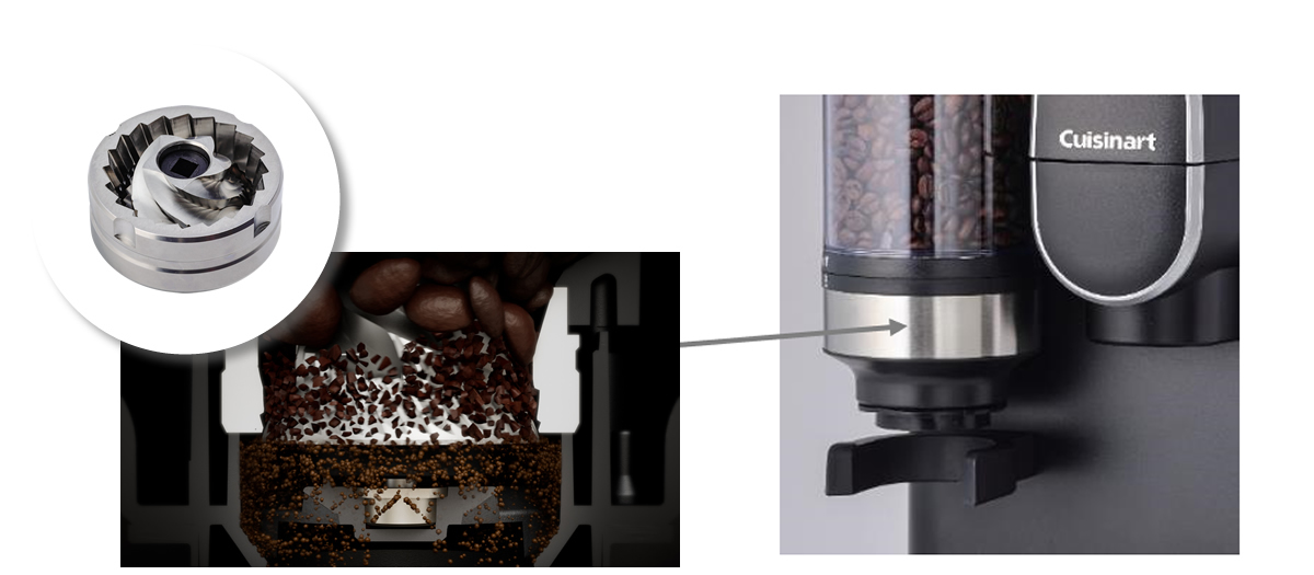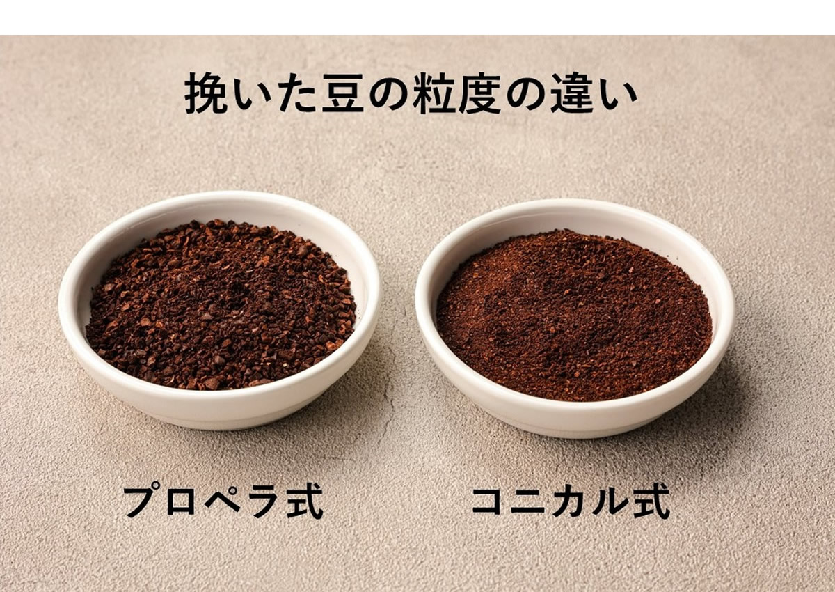 ステンレス製コニカル式ミルを使用しています。コーヒー豆を均一に挽くことができます。
