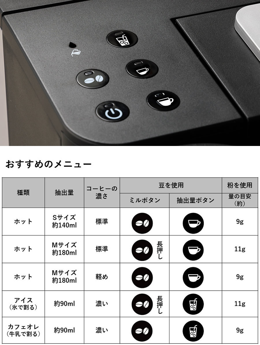 ※ コーヒー豆の量は、コーヒー豆の種類、焙煎度合いにより異なります。