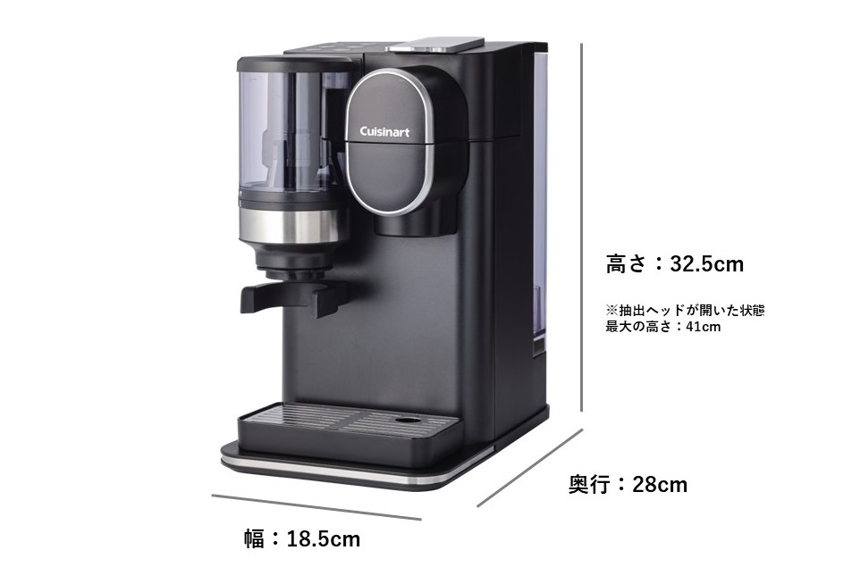 外形寸法(約) | 幅185mm × 奥行280mm × 高さ325mm ※抽出ヘッドが開いた状態 最大の高さ:410mm |