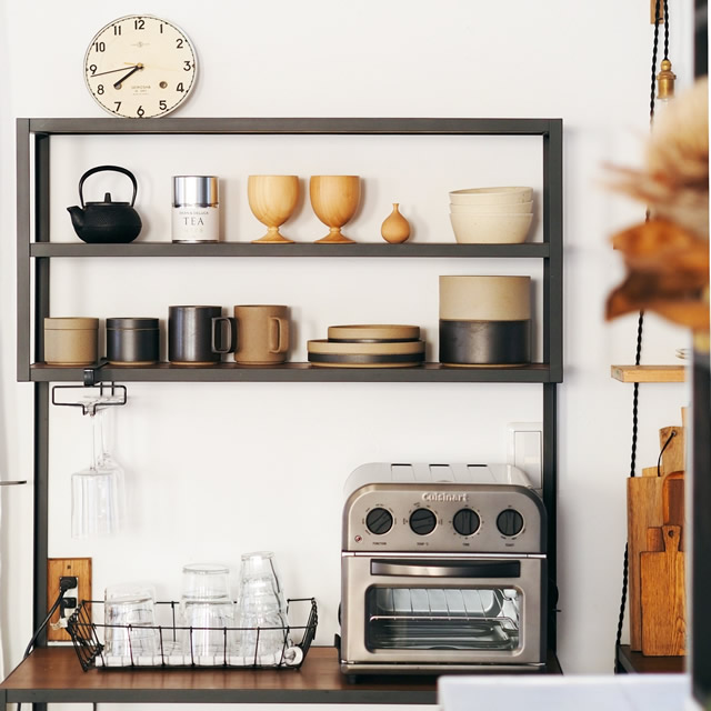ステンレスを基調としたシンプルなデザインは、さりげなく存在感を放ち、インテリアのアクセントに。様々なテイストのキッチンに馴染みます。