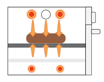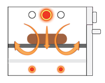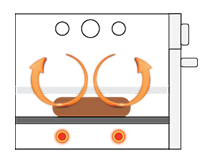 大きなファンで熱風を庫内に対流させながら食パンと具材を短時間で加熱し焼き上げます。