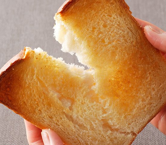 水分をスチームで補いながら、中はもっちり表面は口触りのよいカリッとした食感の食パンに焼き上げます。