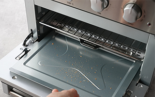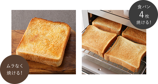 大きなファンで熱風を庫内に対流させながら解凍スピードを上げ、水分をスチームで補いながら口触りのよいカリッとした食感の食パンに焼き上げます。