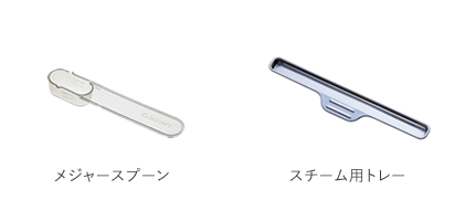 メジャースプーンは持ちやすくスチーム用トレーに入れやすいデザイン。トーストには5mlの水またはぬるま湯を入れるのに使用。15mlまで計れるので調理の際の大さじ小さじとしても使えます。