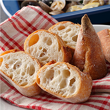 短時間で焼き上げることにより焼き立てにより近い状態に仕上げます。バゲットの乾燥が目立つ場合はスチームを使用することをおすすめします。