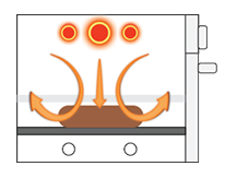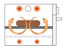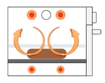 大きなファンで熱風を庫内に対流させながら食パンと具材を短時間で加熱し焼き上げます。惣菜パンなどのリベイクも。