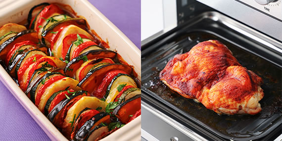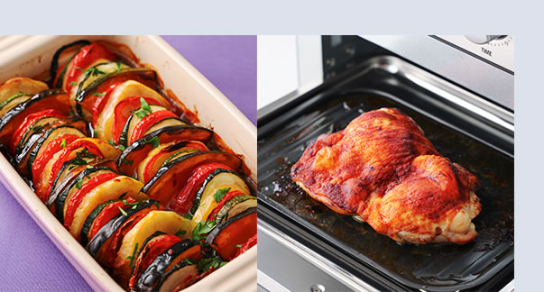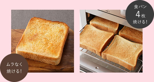 大きなファンで熱風を庫内に対流させながら解凍スピードを上げ、水分をスチームで補いながら口触りのよいカリッとした食感の食パンに焼き上げます。