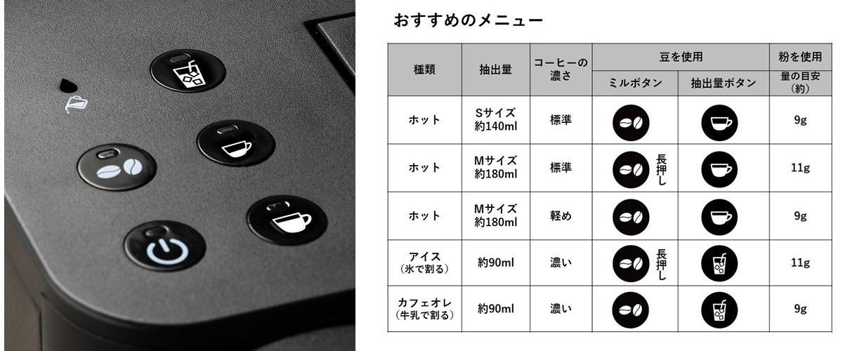 ※ コーヒー豆の量は、コーヒー豆の種類、焙煎度合いにより異なります。