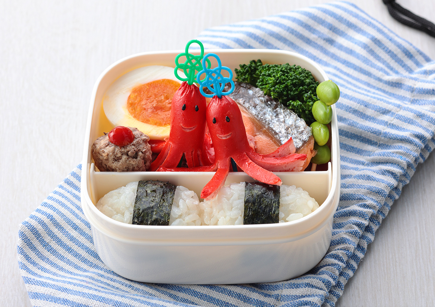 ゆでタマ+ タコさん+ シャケ with ごはん