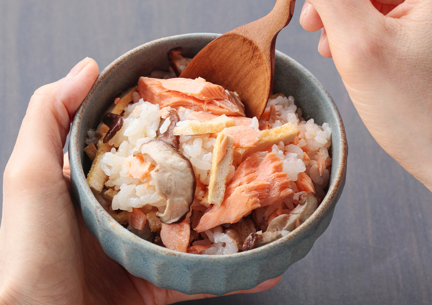 冷凍ごはんの鮭と椎茸の混ぜご飯