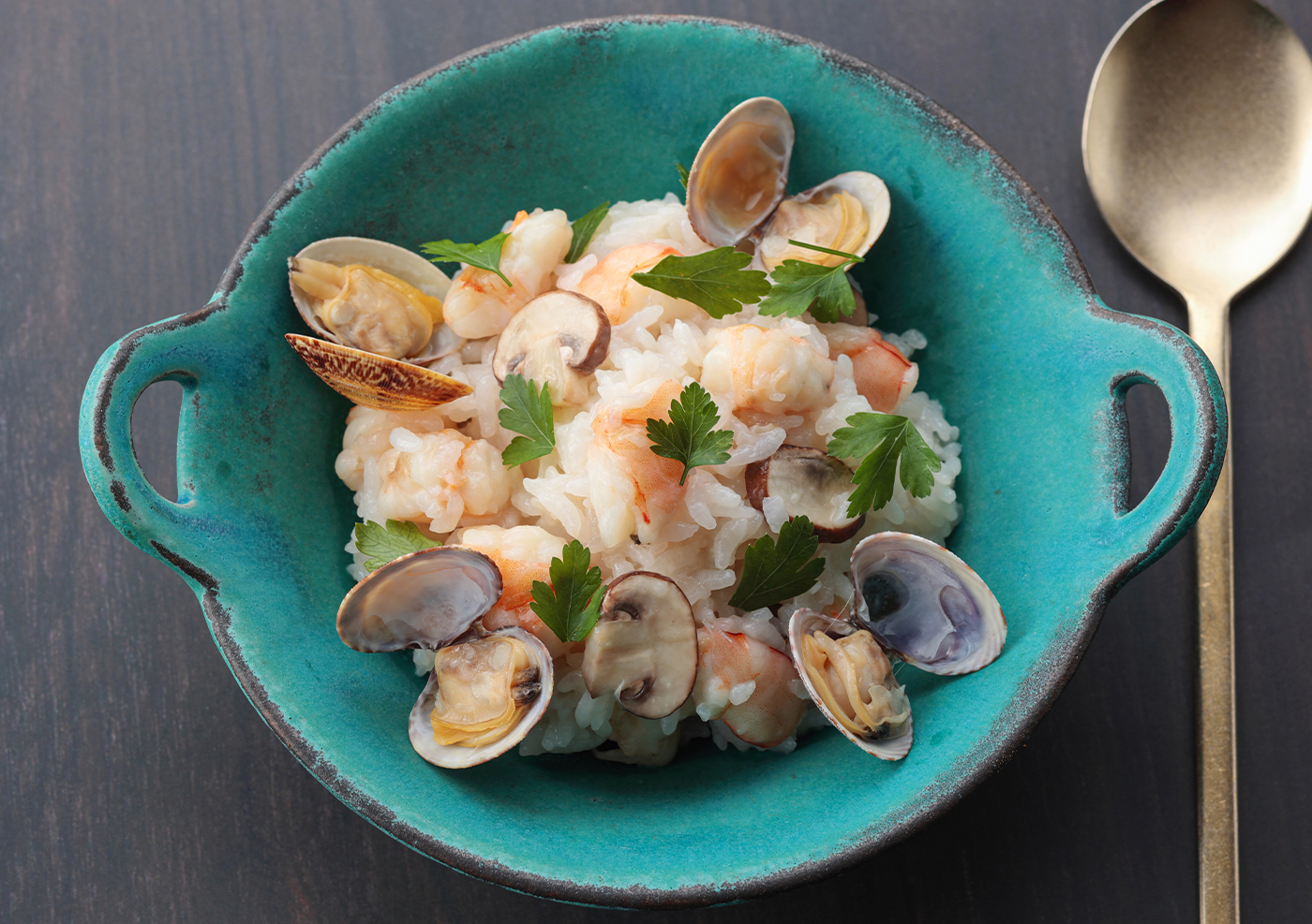 冷凍ごはんの海老とアサリのリゾット