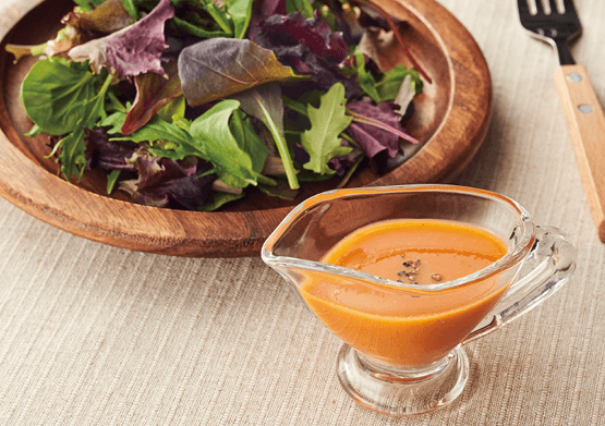 - 冷蔵庫で1時間以上冷やし、お好みのサラダにかける。